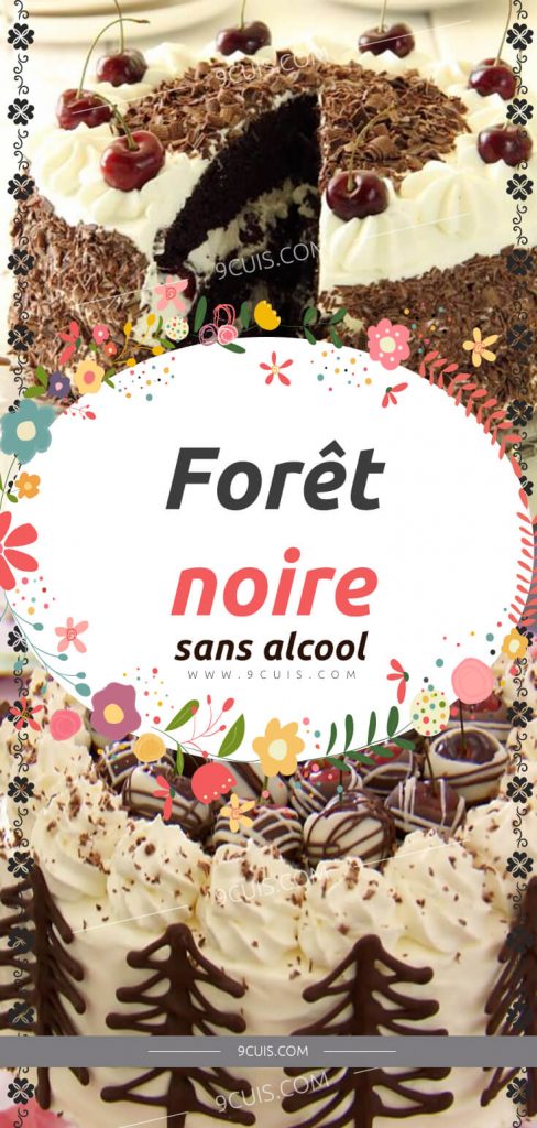 Couper le gâteau en 3 parties égales dans le sens de l’horizontale, imbiber les 2 parties du biscuit par le jus des cerises.
