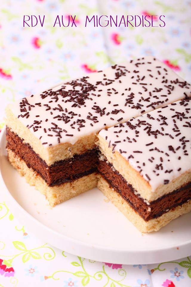 Faites cuire environ 15 minutes en surveillant la cuisson. Démoulez les gâteaux soigneusement. Découpez vos rectangles dans chacun d’eux et laissez refroidir.
