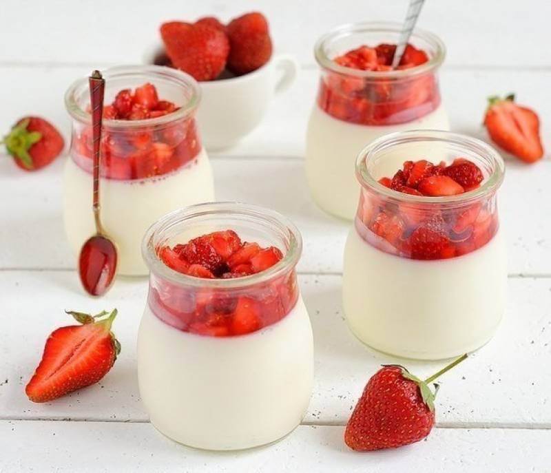 Verser la panna cotta dans des verrines et les laisser refroidir à température ambiante avant de réserver 2-3 h au réfrigérateur.
