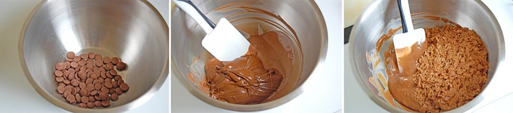 Faire fondre le chocolat au lait au bain marie, puis ajouter le praliné et enfin la feuillantine pailleté. Bien mélanger. Réserver.